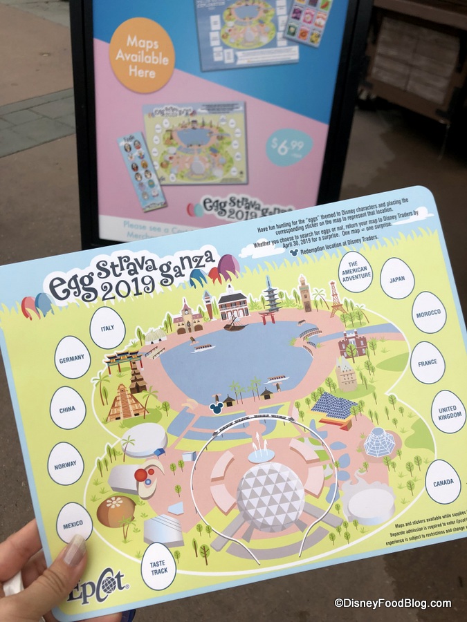 The annual Eggstravaganza is a scavenger hunt taking place through April 21st this year. Epcot guests have the chance to join in the fun by purchasing a scavenger hunt map with an accompanying sticker set to begin their eggs-traordinary search.