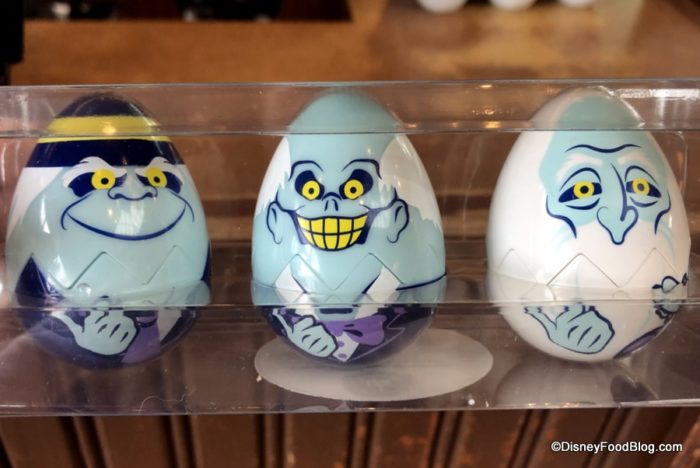 You see, while we were playing along with the 2019 Epcot Eggstravaganza, we found this year’s specialty 3-pack of souvenir eggs featuring the Haunted Mansion’s Hitchhiking Ghosts!