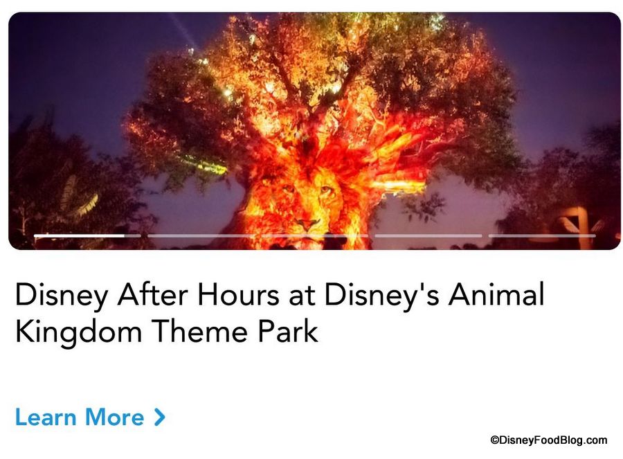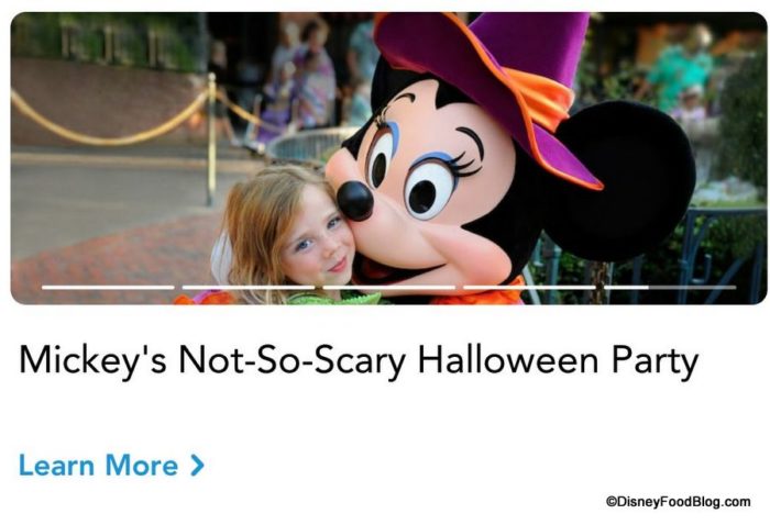 A new slider bar now advertises Disney’s extra ticket options like Disney After Hours and Mickey’s Not-So-Scary Halloween Party for Disney World.
