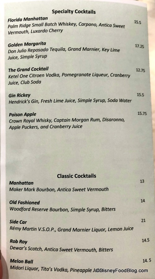The Florida Manhattan and The Grand Cocktail are listed under the Specialties.