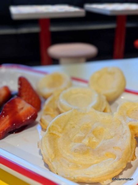 Adam brings us a shot of the Mickey Waffles. They’re not quite as brown as the promo shot, but they look light and airy!