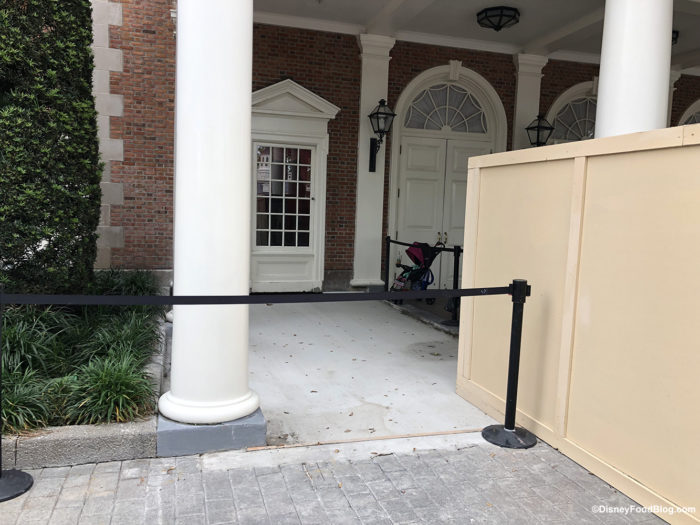 When you stop in the American Adventure pavilion you will see some work is being done around the entrance to the American Adventure building. It looks as though they are working on the ground in the area to each side of the main entrance doors.