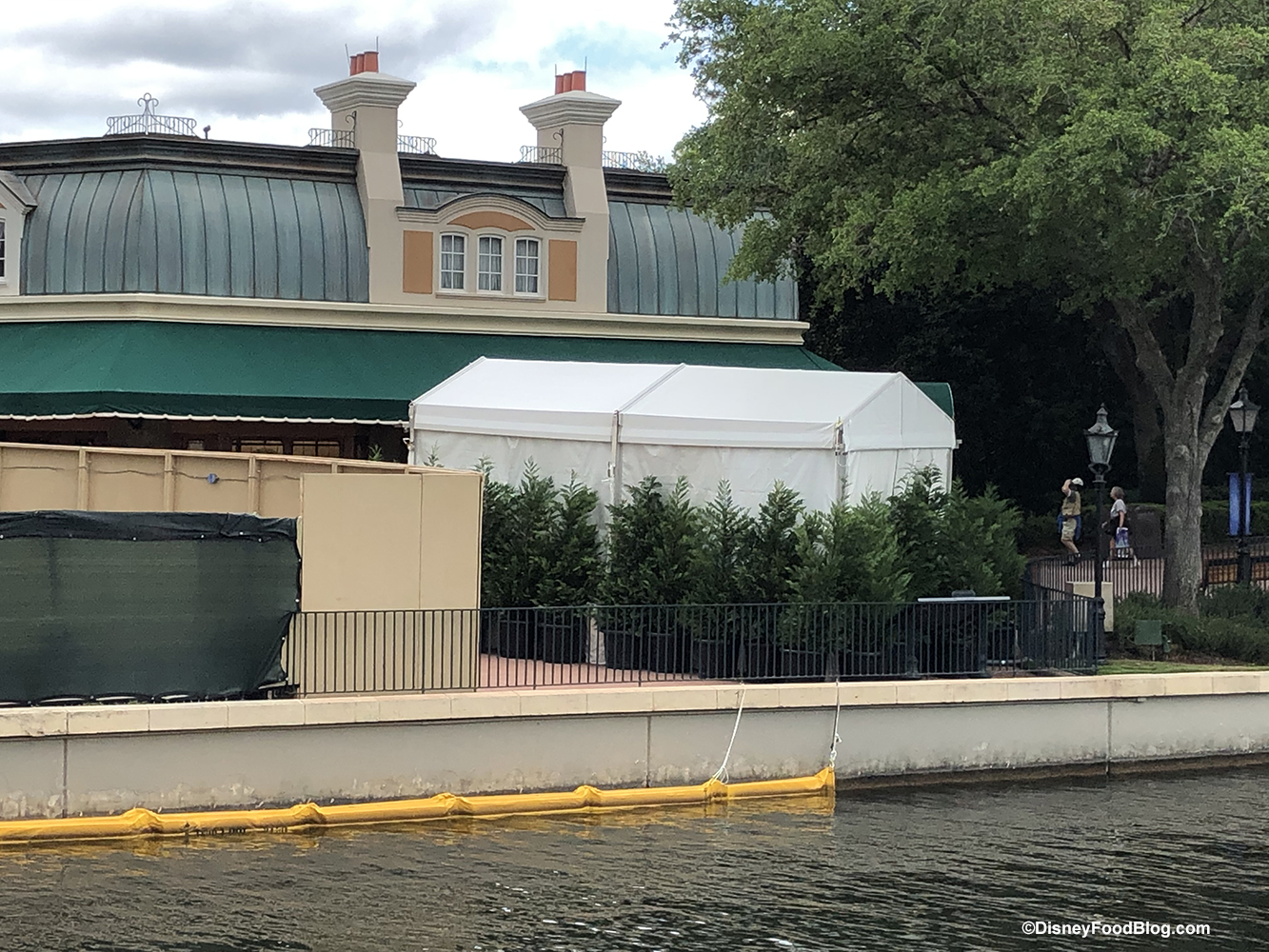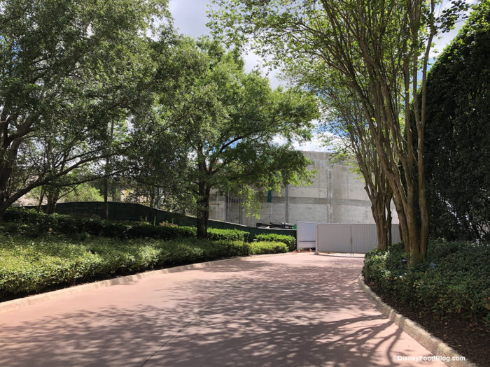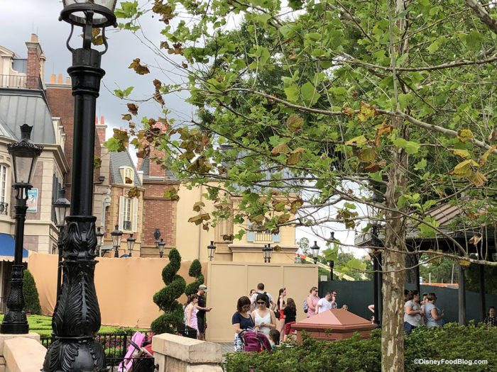 The International Gateway is home to some construction, and used to provide a good view into the France pavilion’s construction for the new creperie and Ratatouille ride, Remy’s Ratatouille Adventure, but the addition of tarps and walls has blocked a lot of that view.