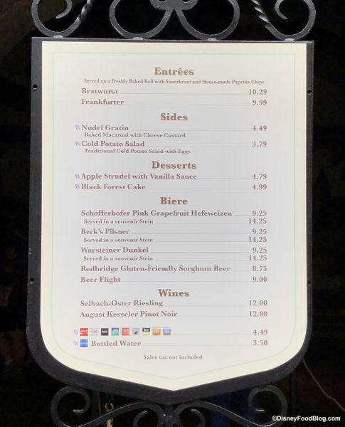 Germany is in on the drink menu updates as well! In Sommerfest there is a new Beer Flight with new options that include Redbridge Gluten Friendly Beer and Warsteiner Dunkel. These options replace the Konig Ludwig Weissbier. If you prefer wine to beer look for the newly added August Kessler Pinot Noir here. Sadly, the jumbo pretzels are no longer available here — but don’t worry, they are still at both of the Bier Carts.