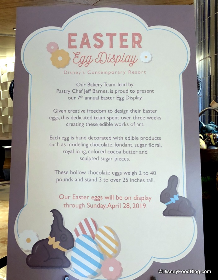 Many thanks to the Contemporary Resort Bakery Team — and to all the talented pastry chefs across Walt Disney World — for the wonderful Easter Egg displays! And thanks to you all for joining us on these tours!