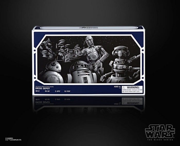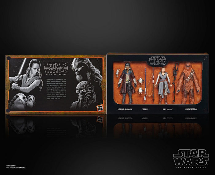 Star Wars: Galaxy’s Edge will present three sets of exclusive figures in the 6-inch Black Series, including The First Order 4-pack and The Droid Depot 4-pack (check out DJ R3X from Oga’s Cantina in the mix!).