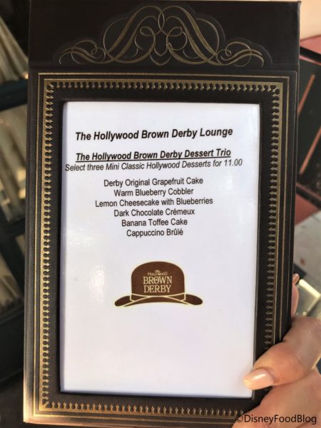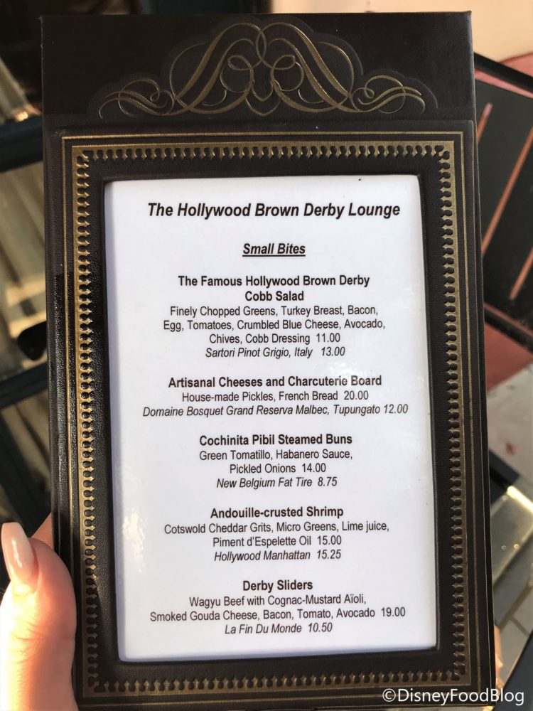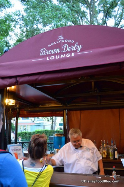 The Hollywood Brown Derby Lounge doesn’t have the black and white caricatures that the full restaurant is known for, but it does have an awesome view for people watching and enjoying the park atmosphere!