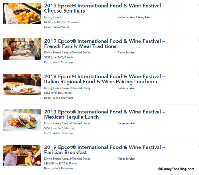 In addition to the seven previously listed Special Events (which include the Mexican Tequila Lunch and the Parisian Breakfast, among others), Cheese Seminars are now listed as well! (You can check out our Cheese Seminar review here.)