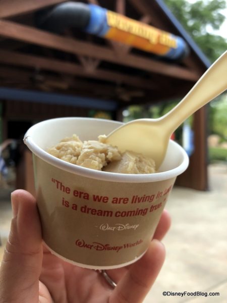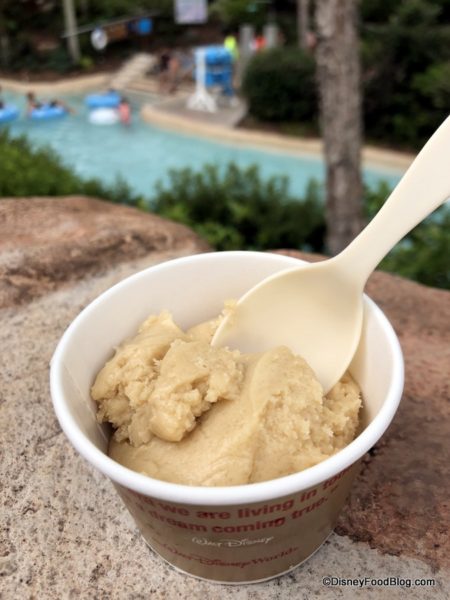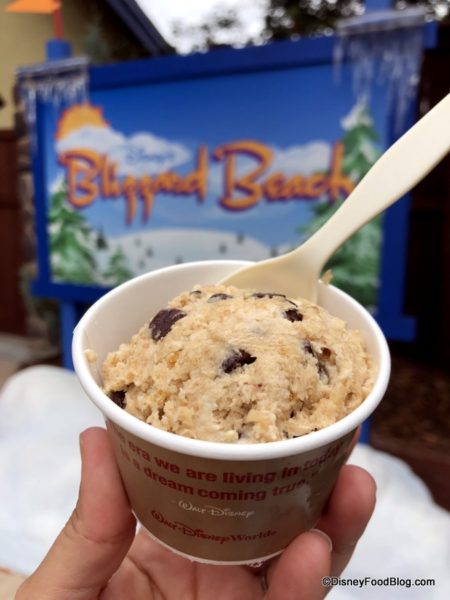 So, Blizzard Beach takes the cookie dough trend — which we’ve likewise enjoyed at places like End Zone Food Court in All Star Sports Resort and AristoCrepes in Disney Springs — and makes it part of the water park fun. So grab a spoon, and dig in!