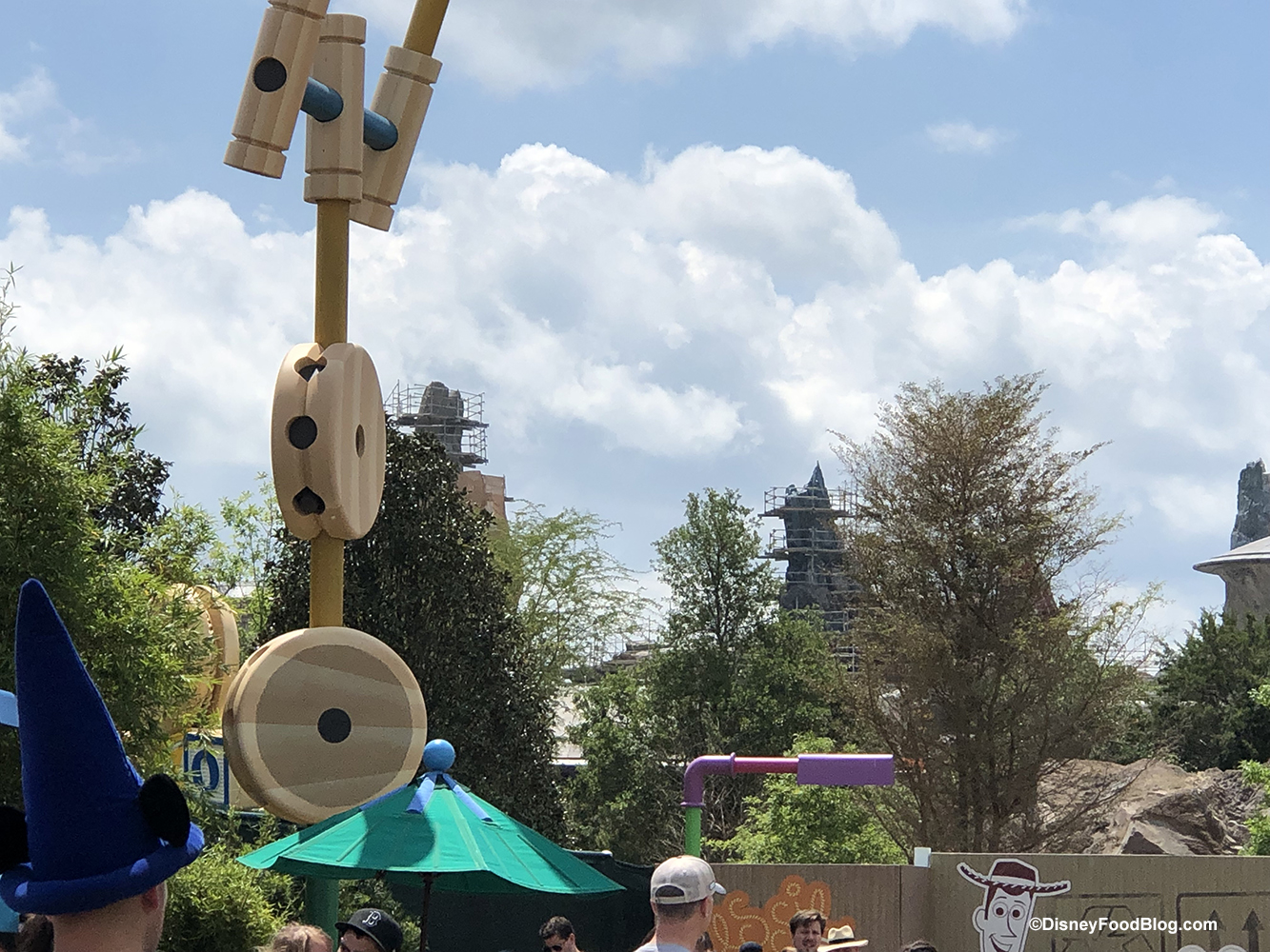 One of the most popular places in the park is the Toy Story Land wall that gives a peek into Star Wars: Galaxy’s Edge (opening on August 29!).