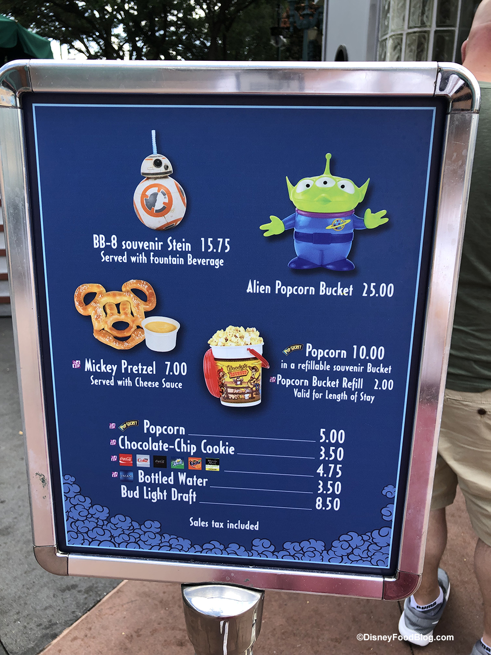 The AT-AT popcorn buckets are no longer on the menus at the popcorn stands around the park right now — but the Green Alien popcorn bucket and BB-8 sipper are still available.