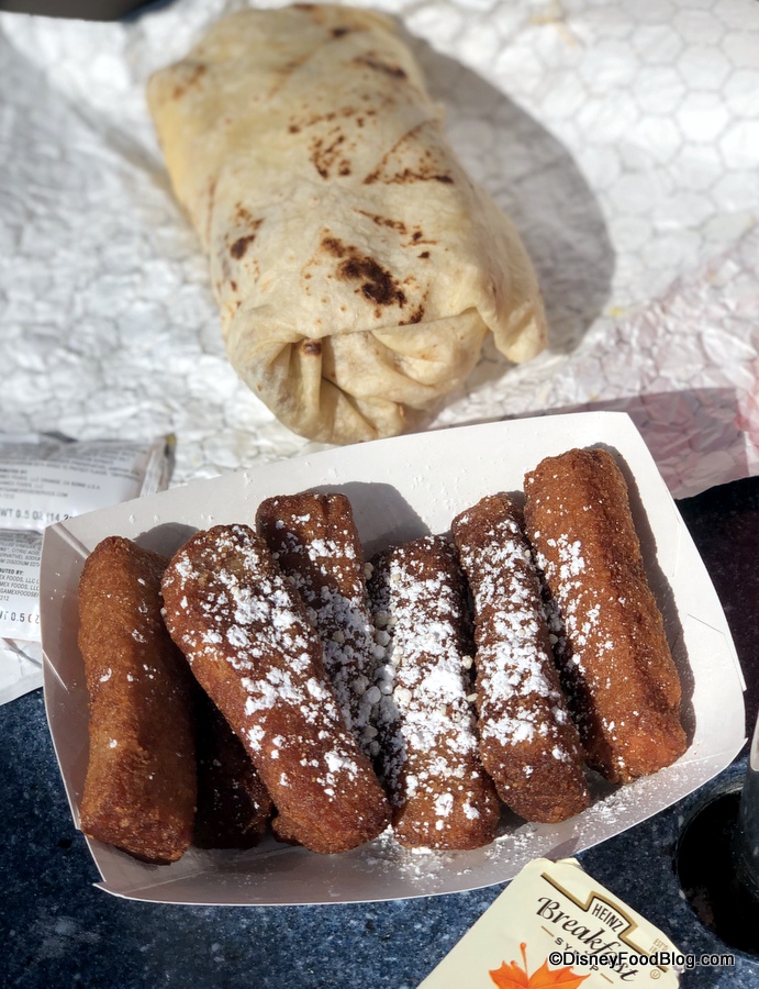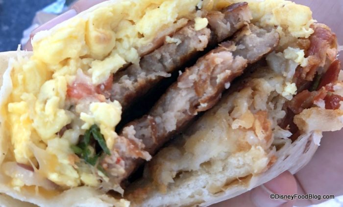 The American Breakfast Burrito is $8.49 and worth the price. In fact, it’s hefty enough to share (particularly if you plan to snack throughout the day!), making it an even better value. Plus: it’s portable so you eat it en route to the all the fun! 😉