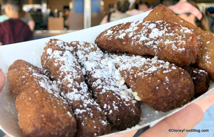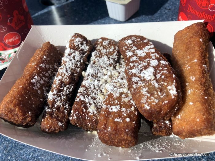The French Toast Sticks are $7.99 and come with a small tub of maple syrup. The serving comes with seven sticks that are dusted with powdered sugar.