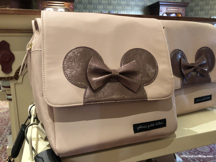 We found this elegant looking bag as well. Which do you prefer: the black backpack for Mickey’s 90th or the pink Minnie bag?