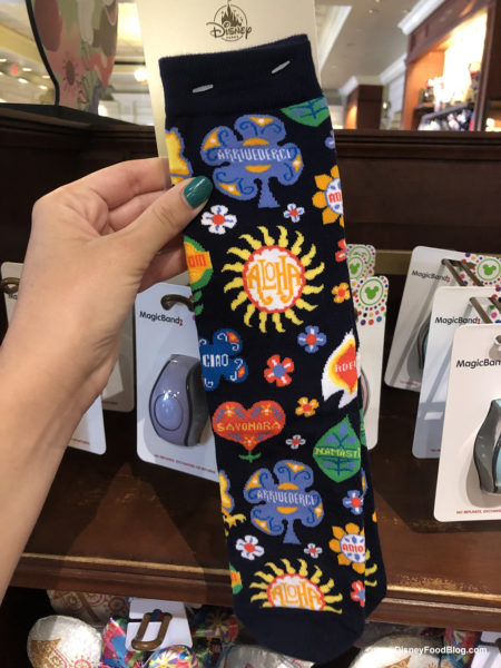 “it’s a small world after all” in these socks that have your feet saying goodbye in many languages.