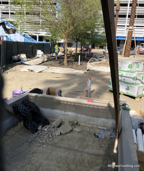 Over in Toon Town, the fountain is behind construction walls. We’ll take a look when it reopens.