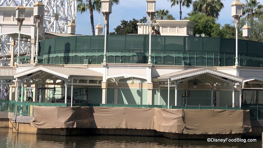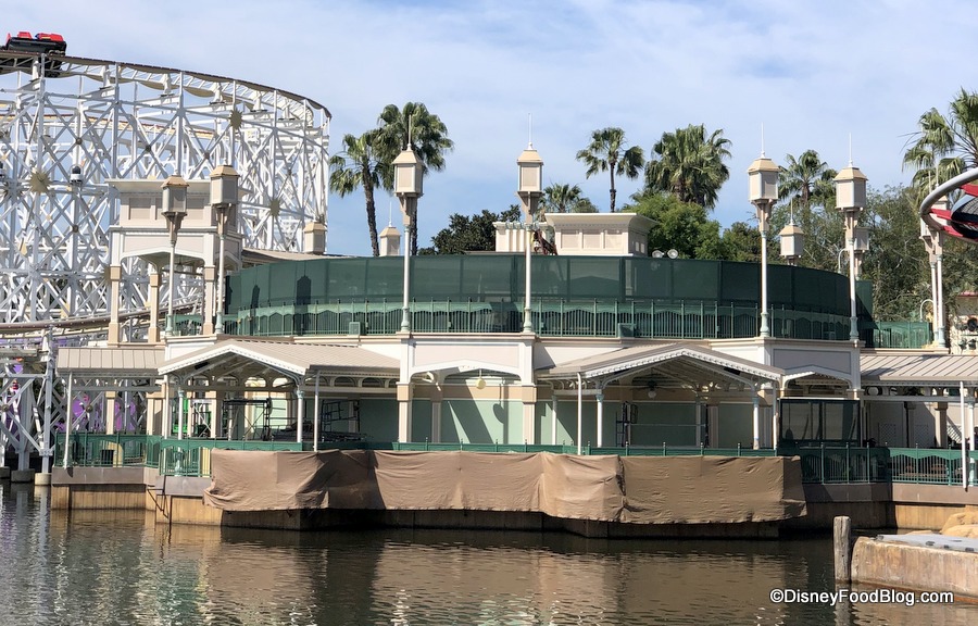 And in Tomorrowland, Alien Pizza Planet is undergoing some exterior work. The restaurant is still open, and you can see seating has been arranged along the wall.