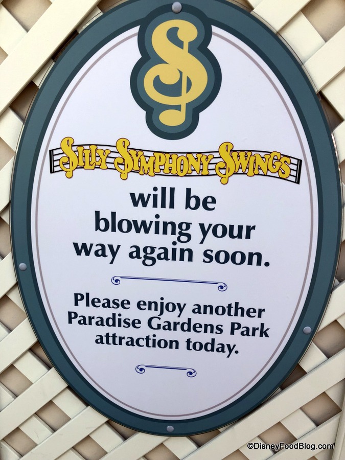 The Silly Symphony Swings are under construction. They’re expected to reopen in late-May.