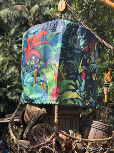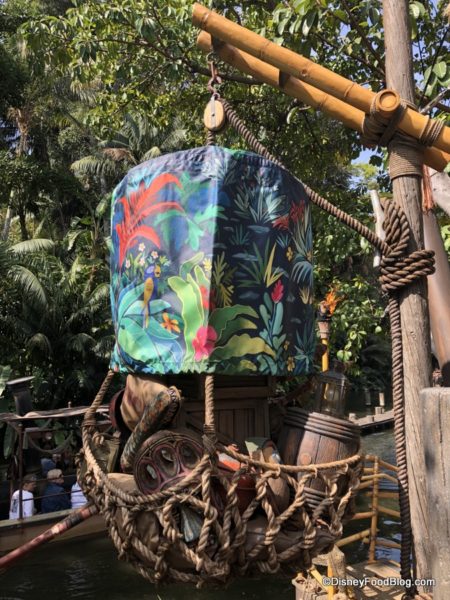 In Disneyland Park, Tropical Hideaway‘s Rosita is under wraps. Here she is on the spot’s opening day.