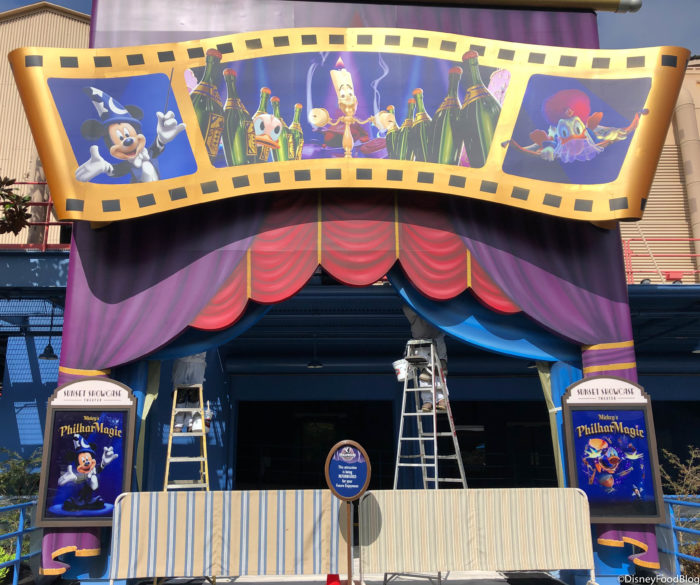 Cast Members at Disneyland Resort have been hard at work putting up Mickey’s PhilharMagic signs on the exterior of the attraction’s building.
