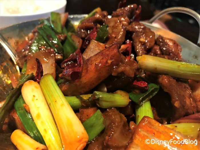 YES! Well, yes by Disney spicy standards. Food at the Disney Parks tends to shy away from super hot or spicy flavors, and this certainly had a little kick compared to what we’re used to. But outside of Walt Disney World, this would definitely not be considered “numbinlgy spicy.” Still, if you don’t care for spicy or hot dishes, I wouldn’t recommend this one.