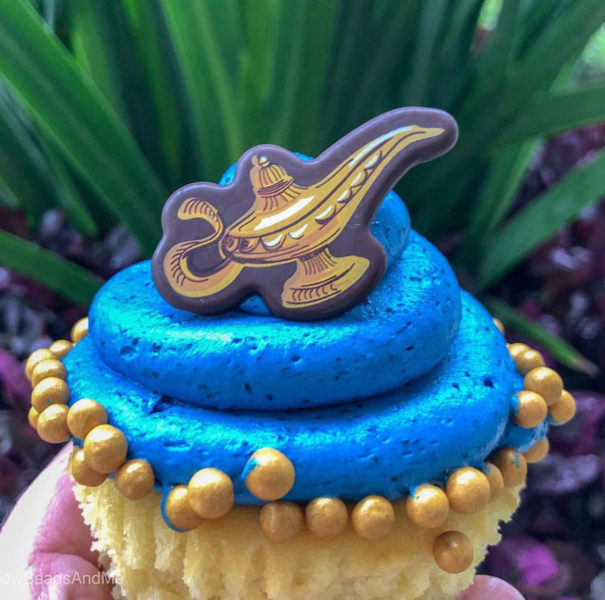 Hop on your Magic Carpet, and fly on over to Walt Disney World’s Saratoga Springs Resort and its quick service spot The Artist’s Palette for an all-new Aladdin Cupcake. At first glance, this one’s a little intense…