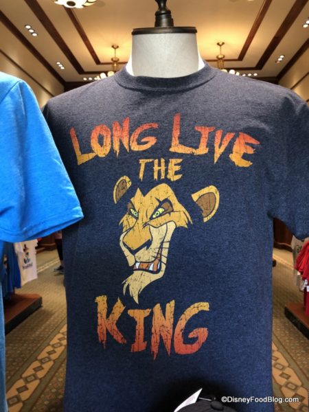 And with the live action Lion King opening this summer, we’re seeing tons of merchandise featuring characters and phrases from the movie. Here, Scar snarls “Long Live the King”.