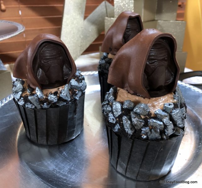 We’re thinking that the peanut butter and chocolate Kylo Ren Cupcake (which will be at Rosie’s All-American Café and Dockside Diner) would probably pick the Red Lightsaber Churro… how about you?