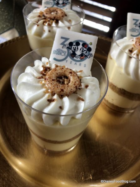 And a nod is given to the park’s former icon, The Sorcerer’s Hat, with this lemon sponge cake with vanilla swiss buttercream, lemon curd, and white chocolate glaze at ABC Commissary and the Fantasmic! food carts!