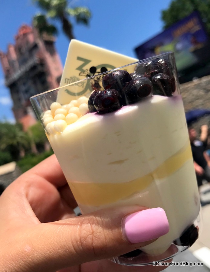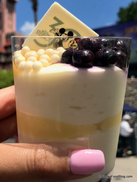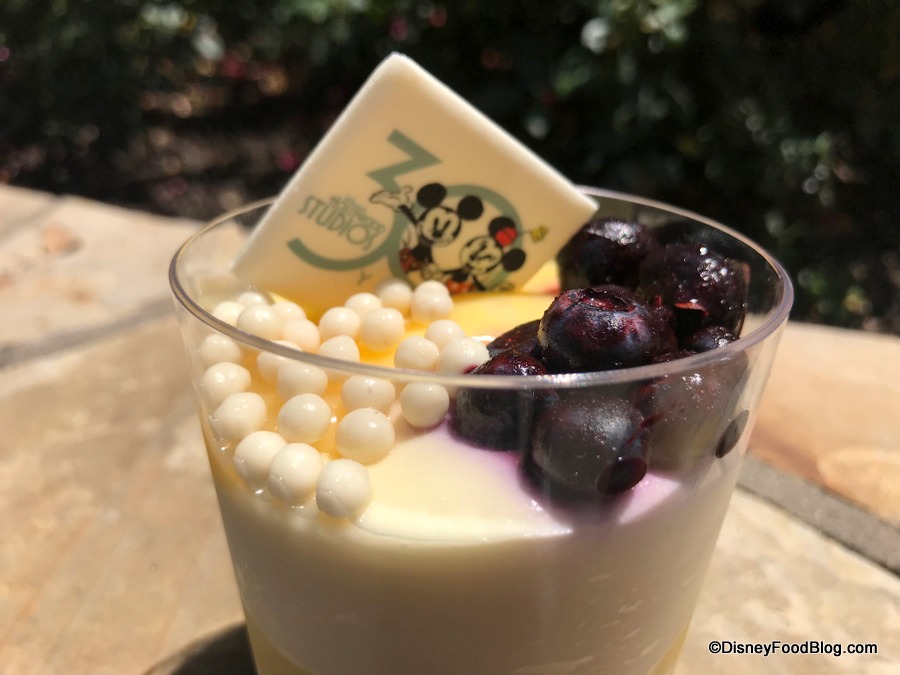 It’s party time at Disney’s Hollywood Studios where the 30th anniversary celebration is still going strong. Over at Catalina Eddie’s on Sunset Boulevard, guests can celebrate with the Lemon Blueberry Cheesecake Verrine!