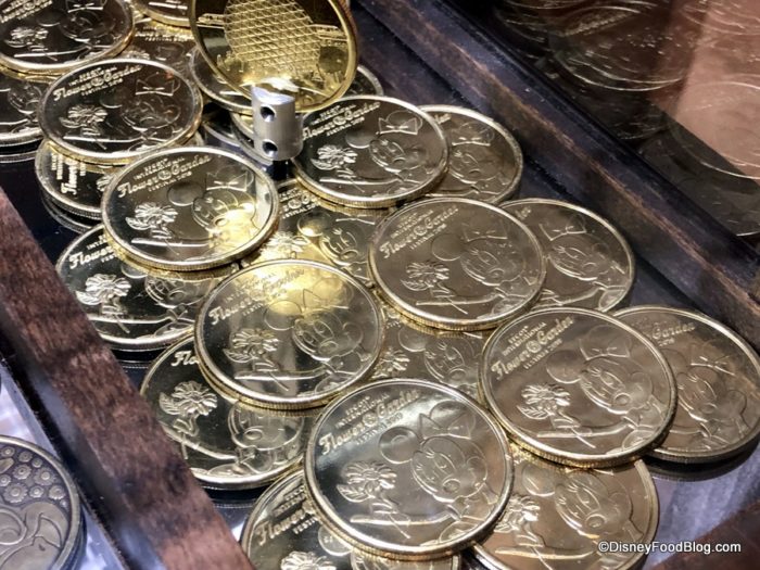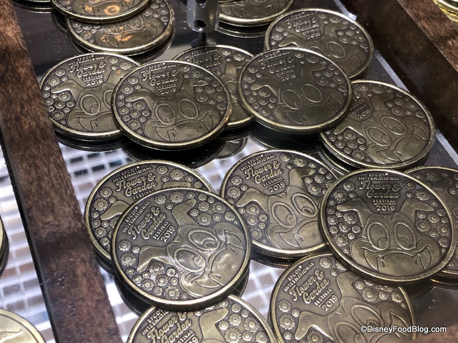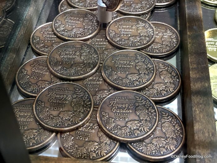 Though Minnie only greets until 4:00 PM, the building itself is open until 9:00 PM. And more Festival fun tucked includes these Flower & Garden Festival medallions which you can purchase “pressed penny” style.