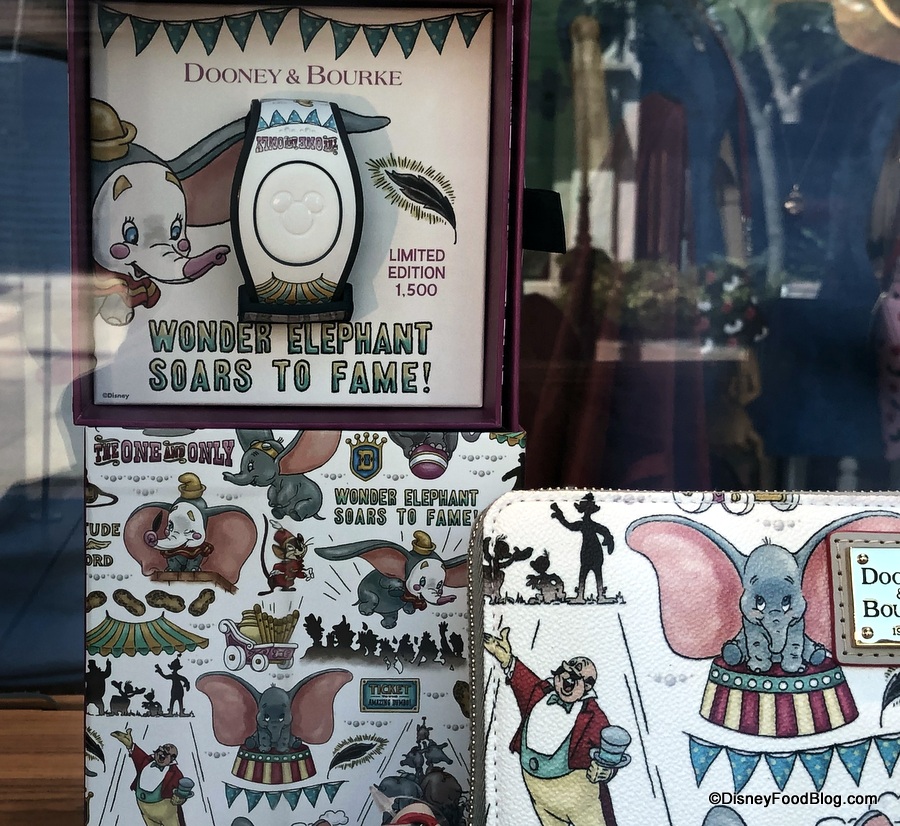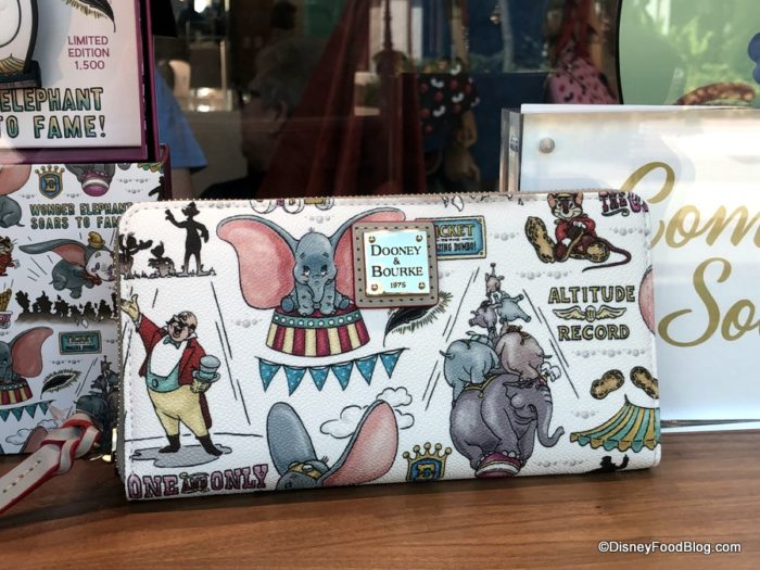 We spotted a wallet, crossbody bag, larger purse, and a limited edition MagicBand in the “Coming Soon” window of Ever After Jewelry Co. at Disney Springs where these pieces will make their official debut. There are only 1,500 of the limited edition Dumbo MagicBands, so make sure you get yours quick!