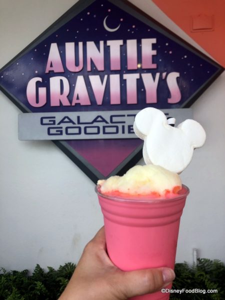 A slew of new sweet treats have arrived at Magic Kingdom (with more popping up on May 9 — see them all here!!), and Auntie Gravity’s Galactic Goodies is celebrating the main mouse with the Mickey Milk Shake!