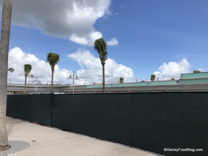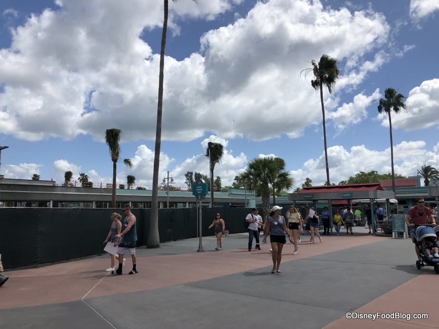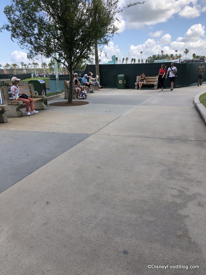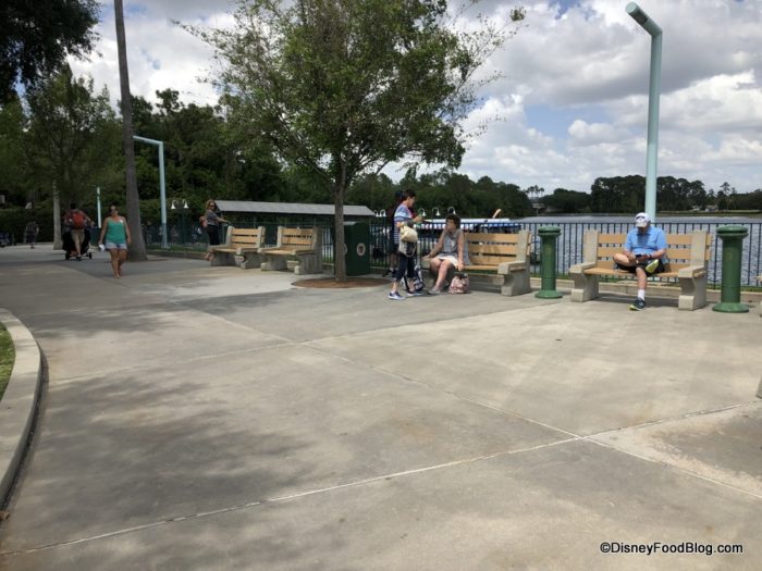 Just beyond the fenced off area is the new smoking area, now that smoking is no longer permitted inside the Disney World theme parks. See our post on the newly designated areas here.