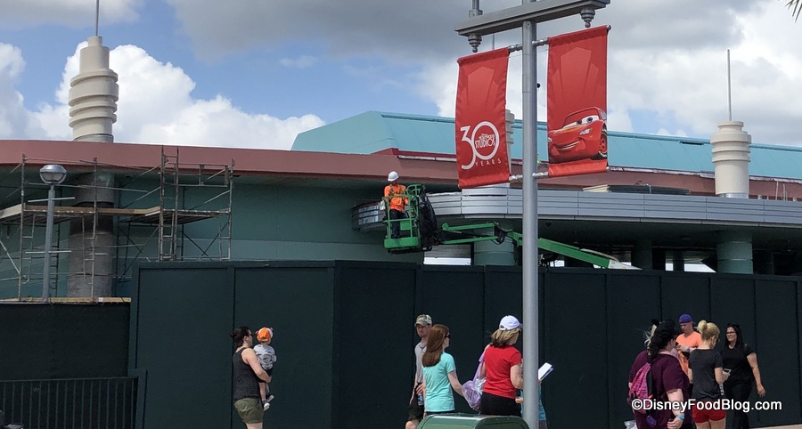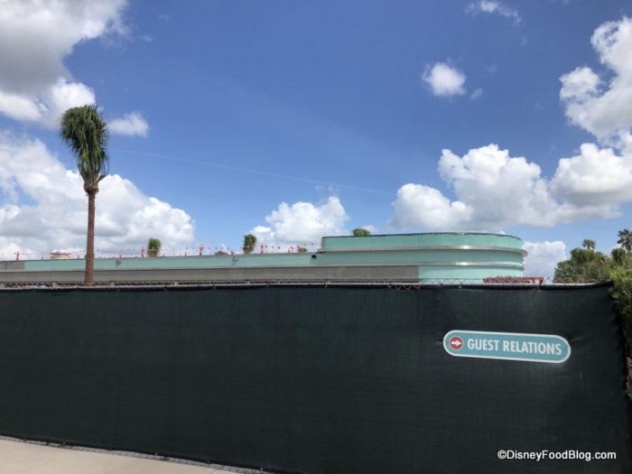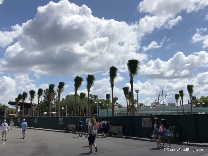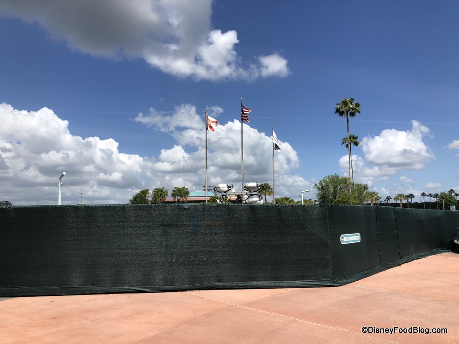 This area near the flags at the Hollywood Studios entrance is still behind a construction fence. Still no word on what’s happening behind it.