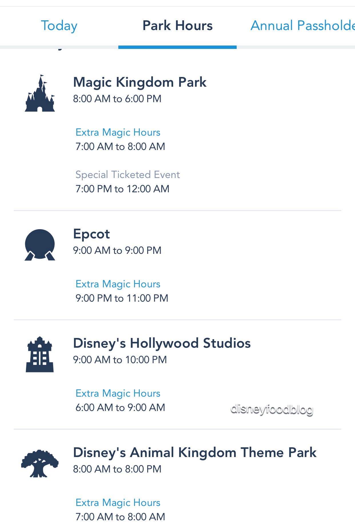 And the best part is that there are some days showing two sets of Extra Magic Hours for some parks like Magic Kingdom. On this date, you’ll be able to do EMH in Magic Kingdom in the morning and the evening! (Who needs sleep?!?!)