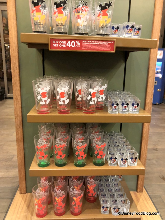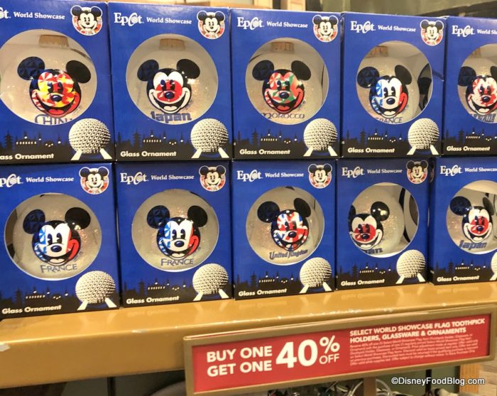 And at various locations in World Showcase, some flag toothpick holders, glassware, and ornaments are BOGO 40% off!