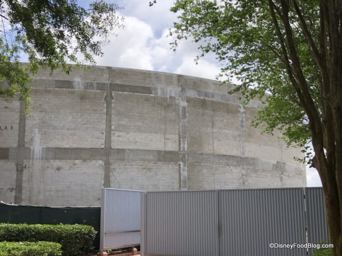 Nearby, ‘Space 220’, the space-themed restaurant coming to the area adjacent to Mission: Space is taking shape — literally. This monolith is a curve of cinderblocks.