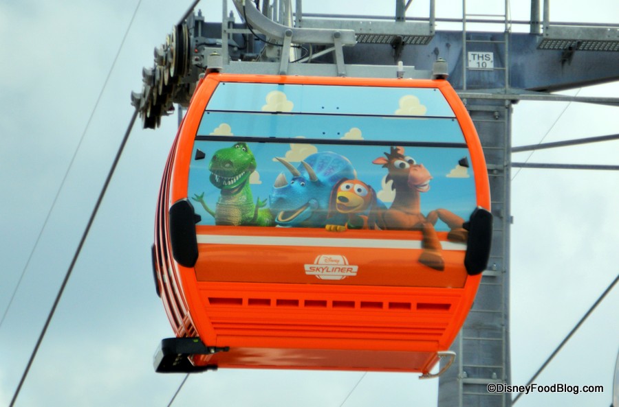 A hallmark of the gondola cabins is that Disney characters will be featured in the design on many of them. And today we’re taking a look at SEVERAL that are flying the friendly skies over Disney’s Hollywood Studios!