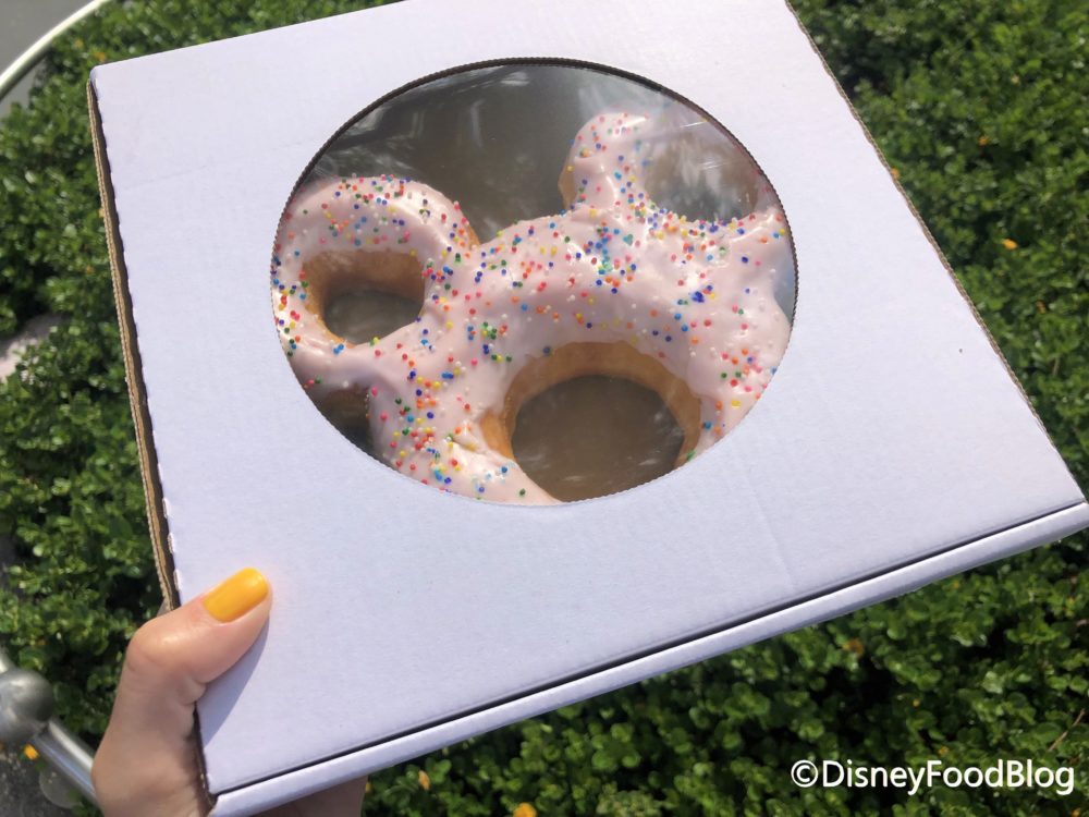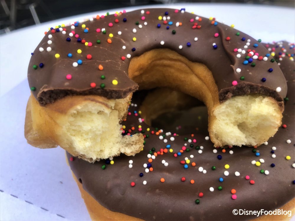 Well, flavor-wise — we have to give the edge to Joffrey’s. That thing is just so light and soft, it’s really hard to beat. Size-wise, the Mickey Celebration Donut is probably more donut real estate. The center section of the Mickey Donut is just a touch smaller than the Joffrey’s Donut — but you get those two ears. Plus the Mickey Celebration Donut is so darn cute, you really can’t lose either way!