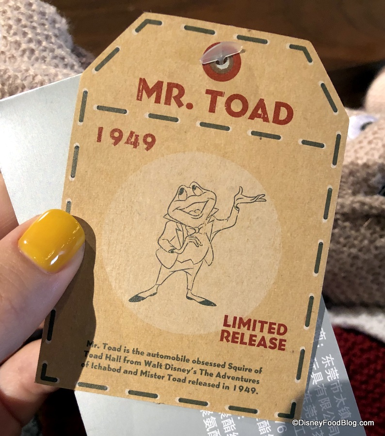 Mr. Toad is $27.99 and listed as a Limited Release item on the tag, so if you see him, act fast before he rides away!