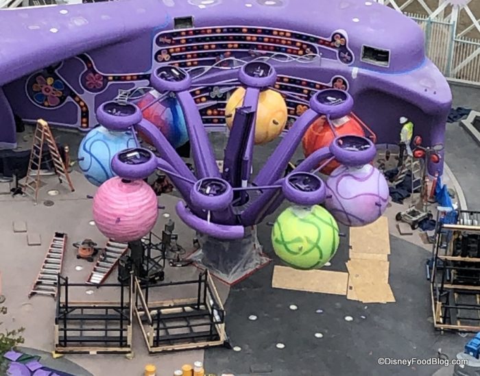 From high above DCA on the Pixar Pal-A-Round, we spy Bing Bong’s Emotional Whirl Wind! The memory balls are moving into place!