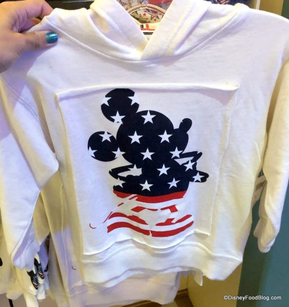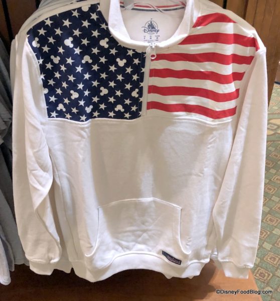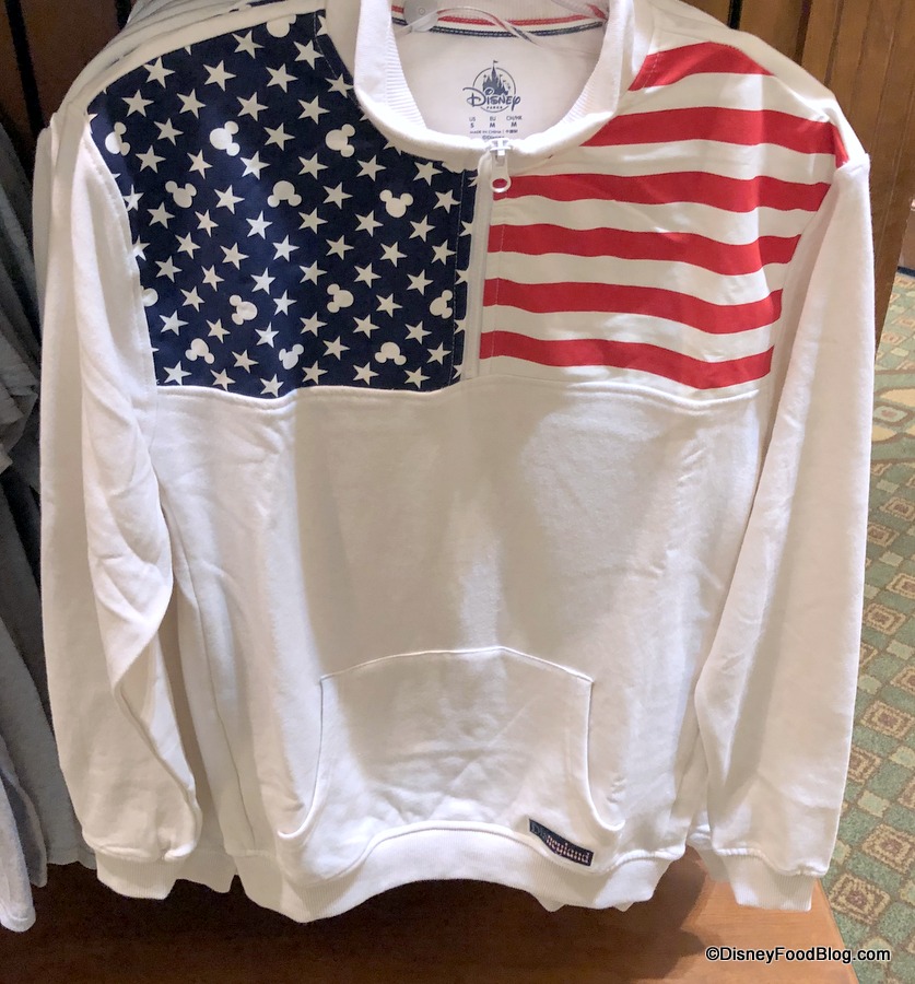 And this half-zip light-weight sweatshirt features the flag — and some Mickeys hidden in the stars.