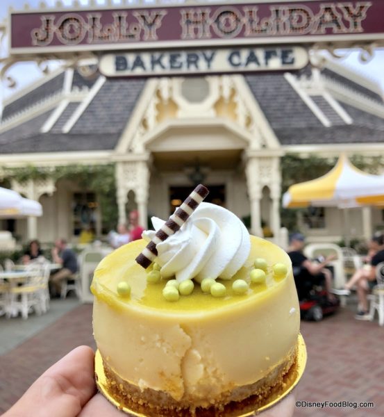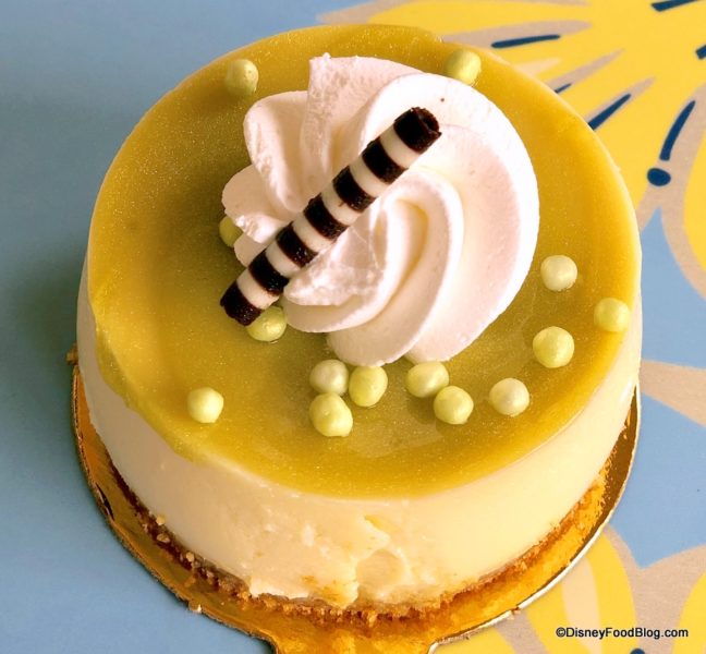 We tried this treat back in March when it was called a Key Lime Tart (see our review here!). The only thing that’s changed is the garnish. The white and chocolate piece used to be a white chocolate daisy. Still a real pucker-up kind of treat. 😉