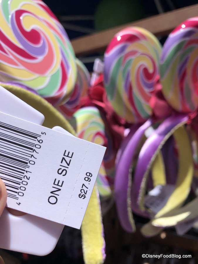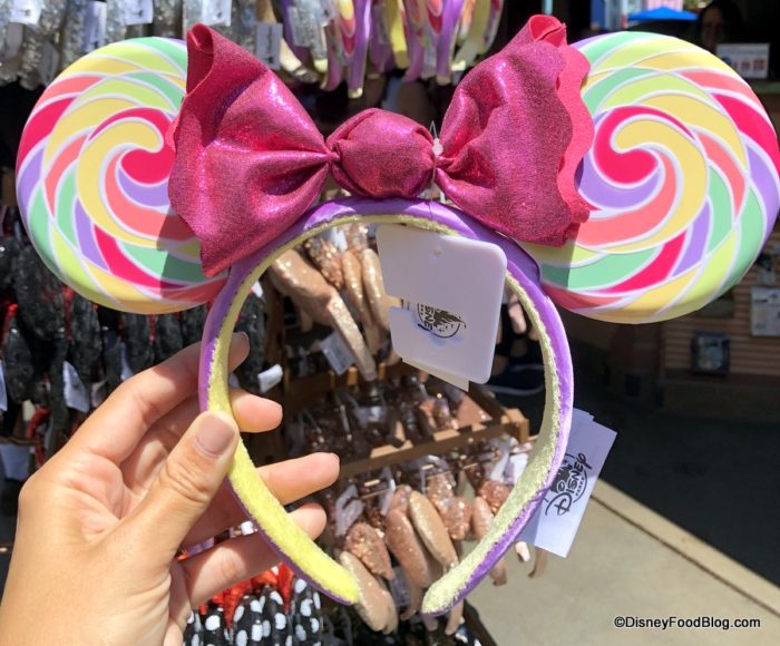 At various merchandise locations in both parks, you can unwrap your very own Lollipop Ears. Note that the pops themselves are plastic, not cloth. (And note that we’ve seen these on the east coast, too!)
