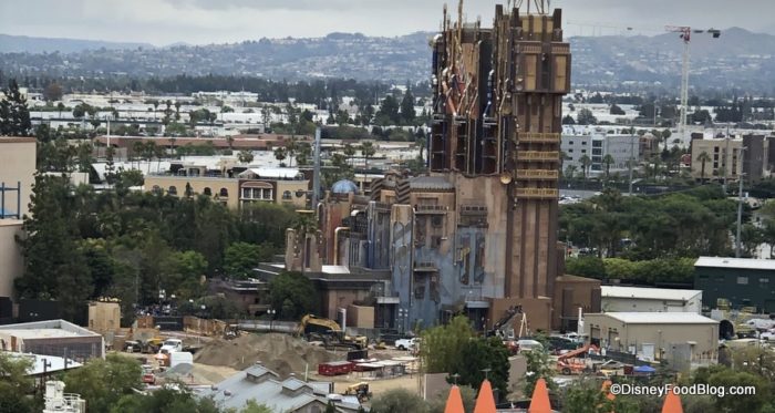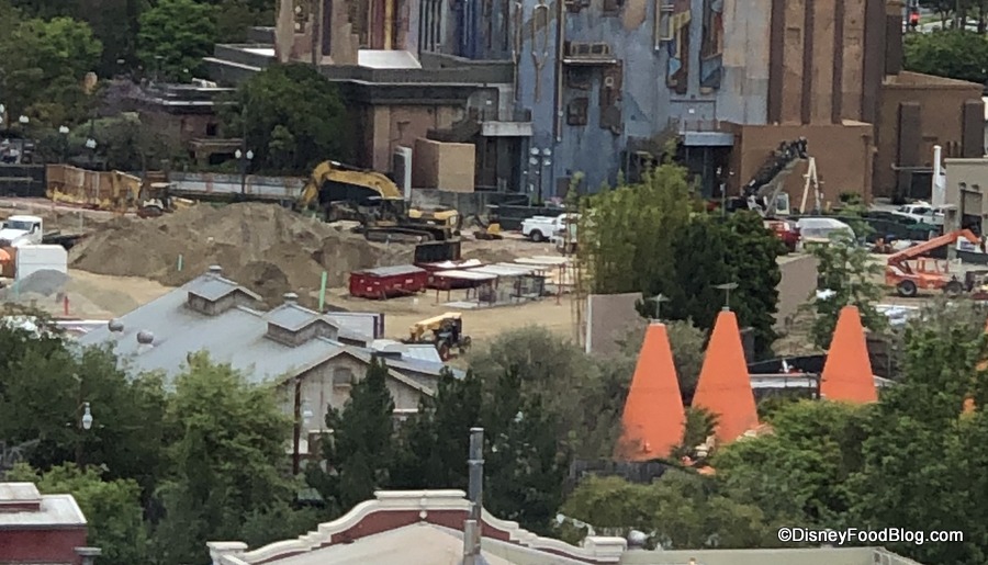 The view from Pixar Pal-A-Round extends to the park’s future superhero-themed land! There’s not a lot to see yet — unless you’re really into construction materials — but we’ll keep riding so we can give you a birds’ eye view.