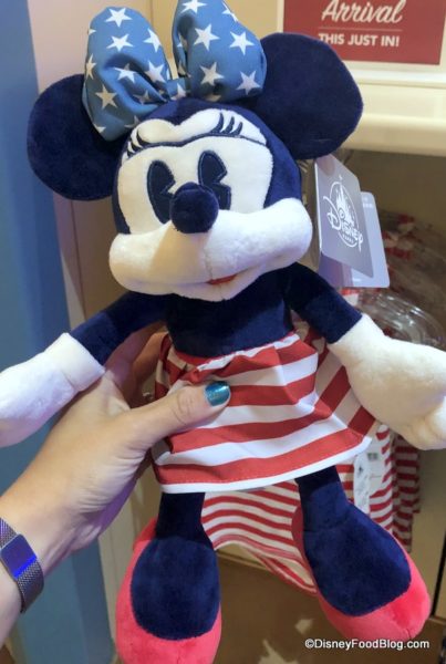 Patriotic Minnie and Mickey plush are available here, too! (We spotted these at Mouse Gear in Disney World’s Epcot, but they’re popping up all over!) Um…does Minnie always have a unibrow with eyelashes?