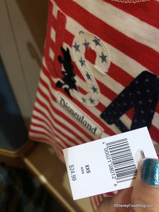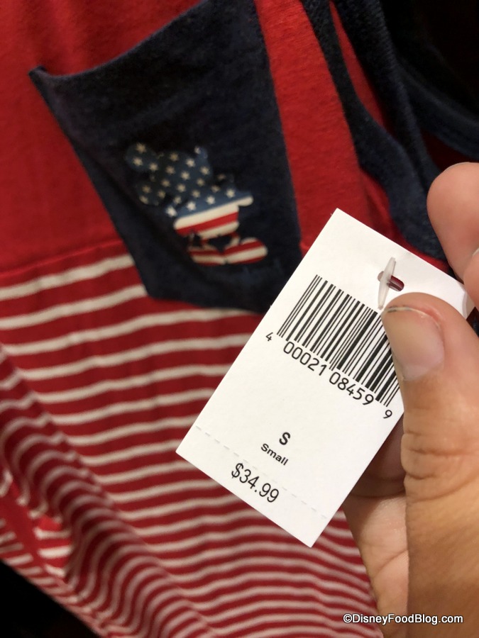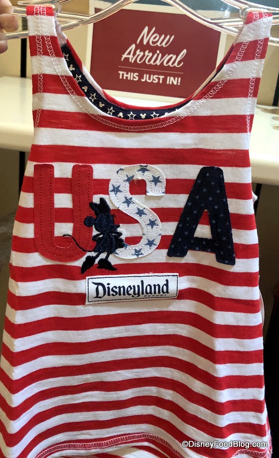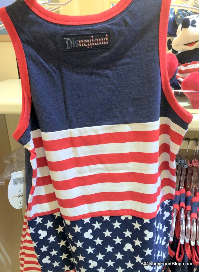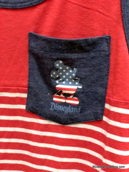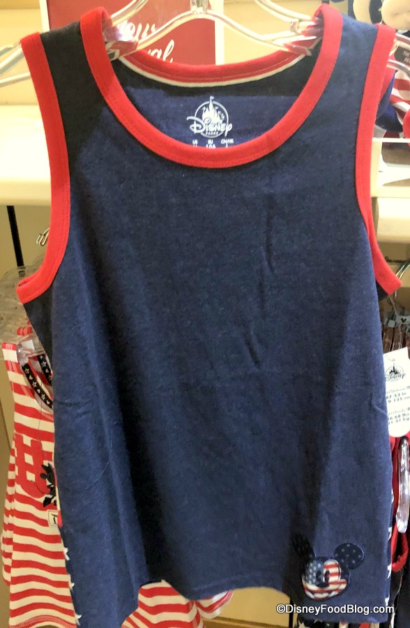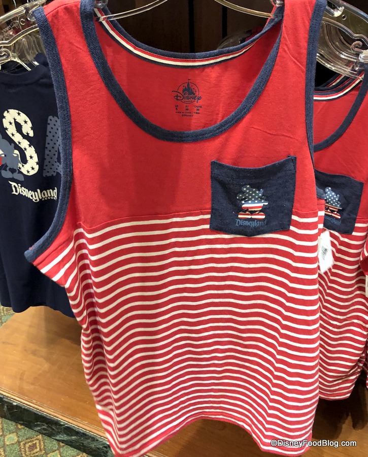 Elias & Co. also has tons of Americana-inspired merchandise, all featuring red, white, and blue. This tank has Mickey on the pocket.