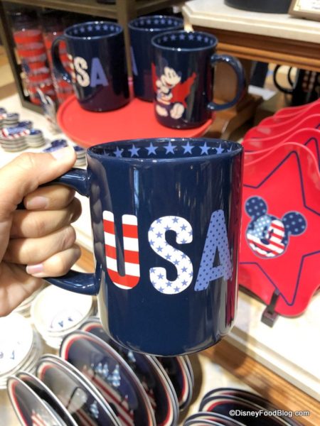 Coffee mugs for your collection. These feature USA on one side and Mickey in front of an outline of the U.S. on the other. Stars line the inside of the mug.