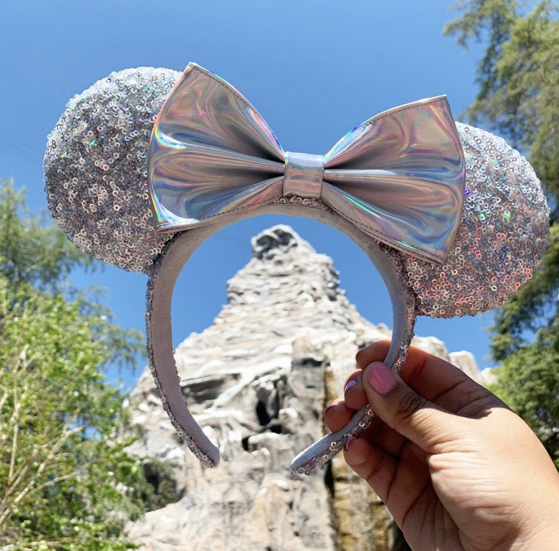 Today, @disneystyle on Instagram revealed two pairs of Minnie Mouse Ear headbands that will make their debut in Disneyland and Disney World on June 15th. First, the Magic Mirror ears are a silvery iridescent color! I LOVE the bow which looks like it will simply sparkle like a rainbow in the Disney sun.